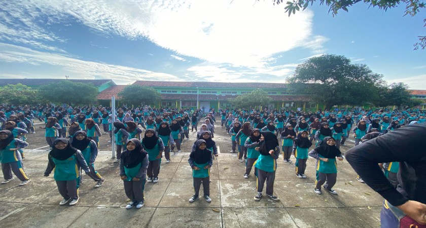 Siswa dan Guru MTsN 9 Cirebon Ikuti Senam Sehat Anak Indonesia.